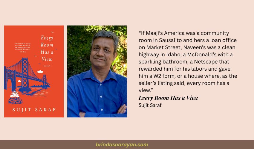 Reading Every Room Has a View was particularly gratifying, because it offers up one among myriad possibilities of the Indian American experience in the technophilic El Dorado. Swiveling around the past and present ruminations of Usha, whose husband has just died and whose corpse overlooks their vaunted view of the Golden Gate Bridge and Alcatraz, the narrative jostles regrets with flattened desires, the comical with the profound and dissatisfying presents with misremembered pasts.